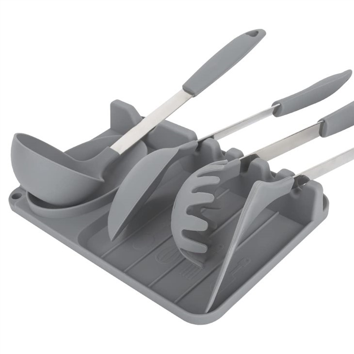 1. Išlaiko jūsų stalviršius švarius kiekvieną kartą gaminant – šis virtuvės stalviršio šaukšto atramas apsaugo jūsų stalviršius nuo maisto gaminimo netvarkos. Didesnė lašelinio padėklo konstrukcija padės sugauti visus lašelius, net ir nuo didelių indų. Puikiai tinka kaip šaukšto laikiklis viryklės ar kepsninės indų laikikliui